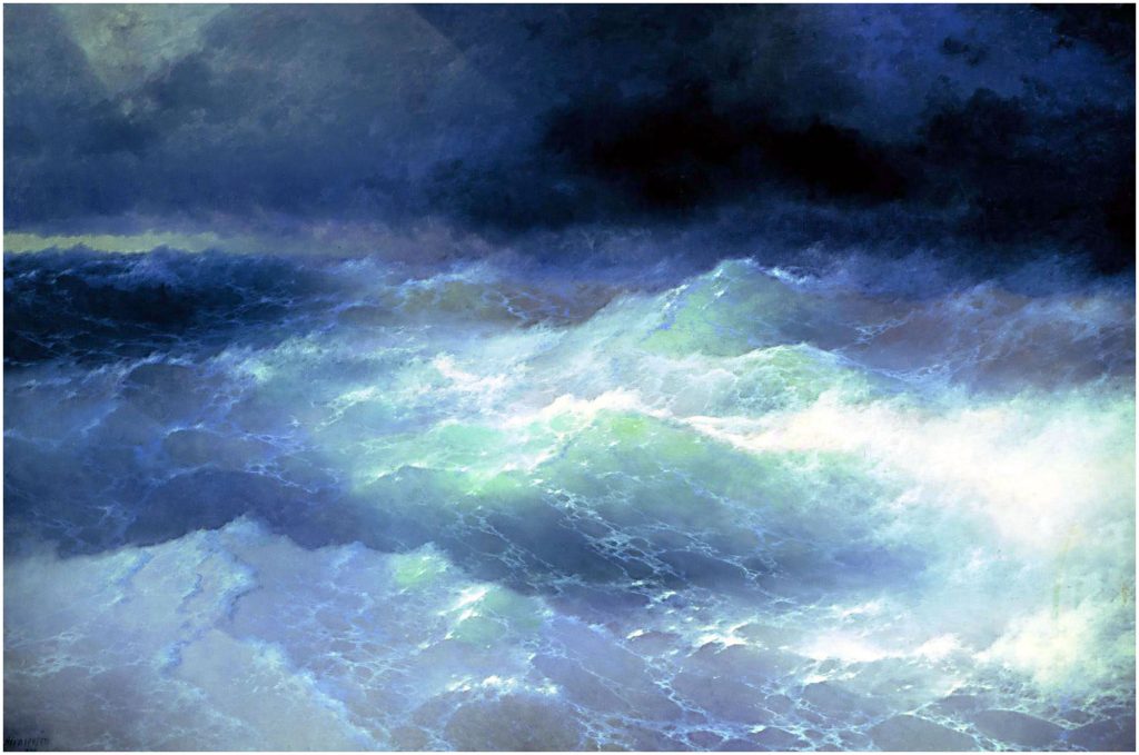 Когда художнику исполнилось 33 года, он создал свой шедевр «Девятый вал». По поверьям мореплавателей и рыбаков, девятый вал – самая сильная и грозная волна во время шторма. Словосочетание вошло в русский язык как синоним опасности и стихии. Именно это явление запечатлел Иван Айвазовский в своей грандиозной картине размером 2 на 3 метра, написанной за 11 дней у себя в мастерской в Феодосии.