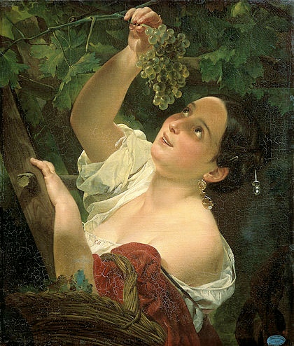 Как и в первом произведении, художник большое внимание уделил цвету, всякий раз работая в полуденное время. И вновь ему удалось передать очарование и живость прекрасной девушки, наполненной такой же жизненной силой, что и гроздь винограда, которую она срывает.