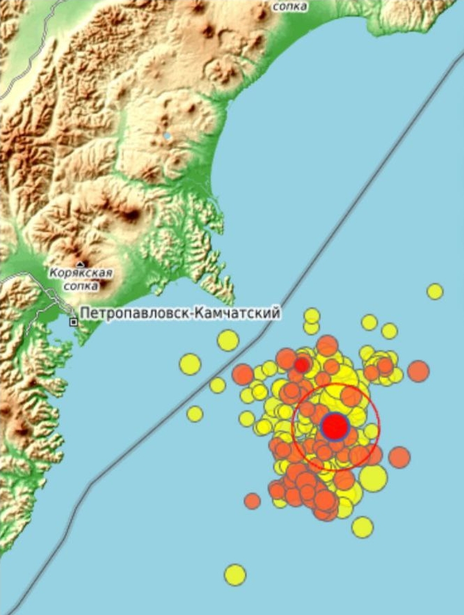 В прошедшее воскресенье 20 июля 2025 года в 18 часов 48 минут камчатского времени произошло землетрясение с магнитудой равной 7,6. Если верить данным Камчатского филиала Геофизической службы Российской академии наук (РАН), эпицентр находился в Тихом океане, примерно в 150 км от Петропавловска-Камчатского, на глубине около 17 км (координаты: 52,54 градуса северной широты, 160,16 градусов восточной долготы). Ему предшествовал предварительный толчок (форшок) с магнитудой равной 6,7. Краевую столицу трясло около двух минут. В жилых домах с полок попадала посуда, как маятники качались люстры и непроизвольно закрывались двери, в некоторых квартирах свалились антресоли, холодильники со стиральными машинами хаотично двигались по свободному пространству на кухнях и в ванных комнатах. Магазины пострадали не меньше, чем жилые помещения. На протяжении трех дней Камчатку ощутимо трясло не менее сотни раз.